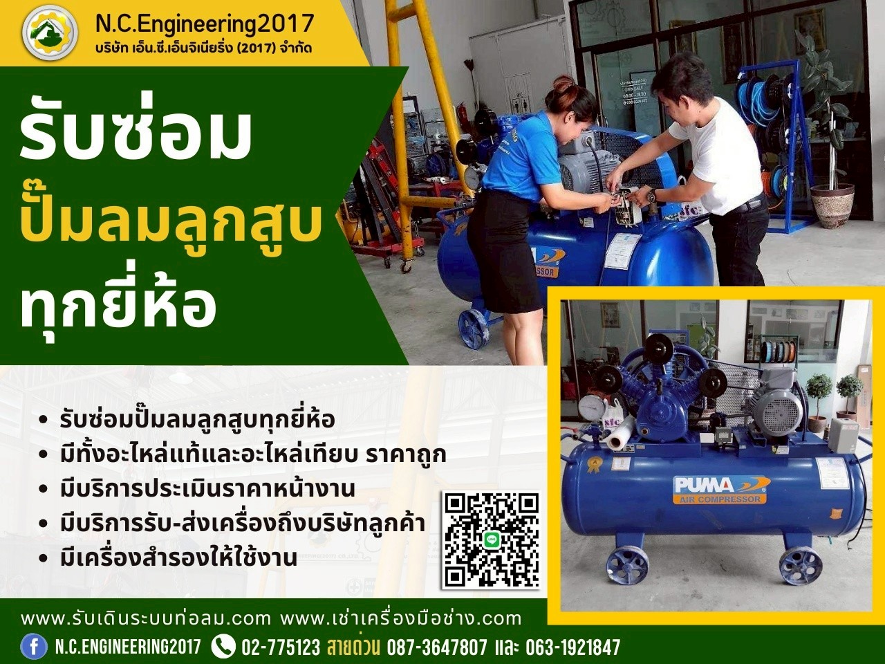 N.C.Engineering2017 ให้บริการรับซ่อมปั๊มลมลูกสูบทุกยี่ห้อ สำหรับโรงงานอุตสาหกรรม อู่ซ่อม และธุรกิจที่ใช้ระบบลม โดยทีมช่างผู้เชี่ยวชาญ ตรวจเช็กอาการเสียอย่างละเอียด ซ่อมตรงจุด ลดปัญหาซ่อมซ้ำ และช่วยยืดอายุการใช้งานของเครื่อง