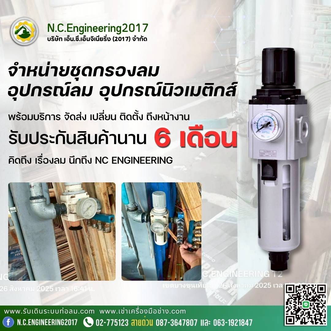 NC Engineering (2017) ให้บริการจำหน่ายและติดตั้งชุดกรองลม อุปกรณ์ลม และอุปกรณ์นิวเมติกส์ สำหรับระบบลมในโรงงานอุตสาหกรรม ช่วยกรองสิ่งสกปรก ความชื้น และควบคุมแรงดันลมให้เหมาะสมกับการใช้งานจริง