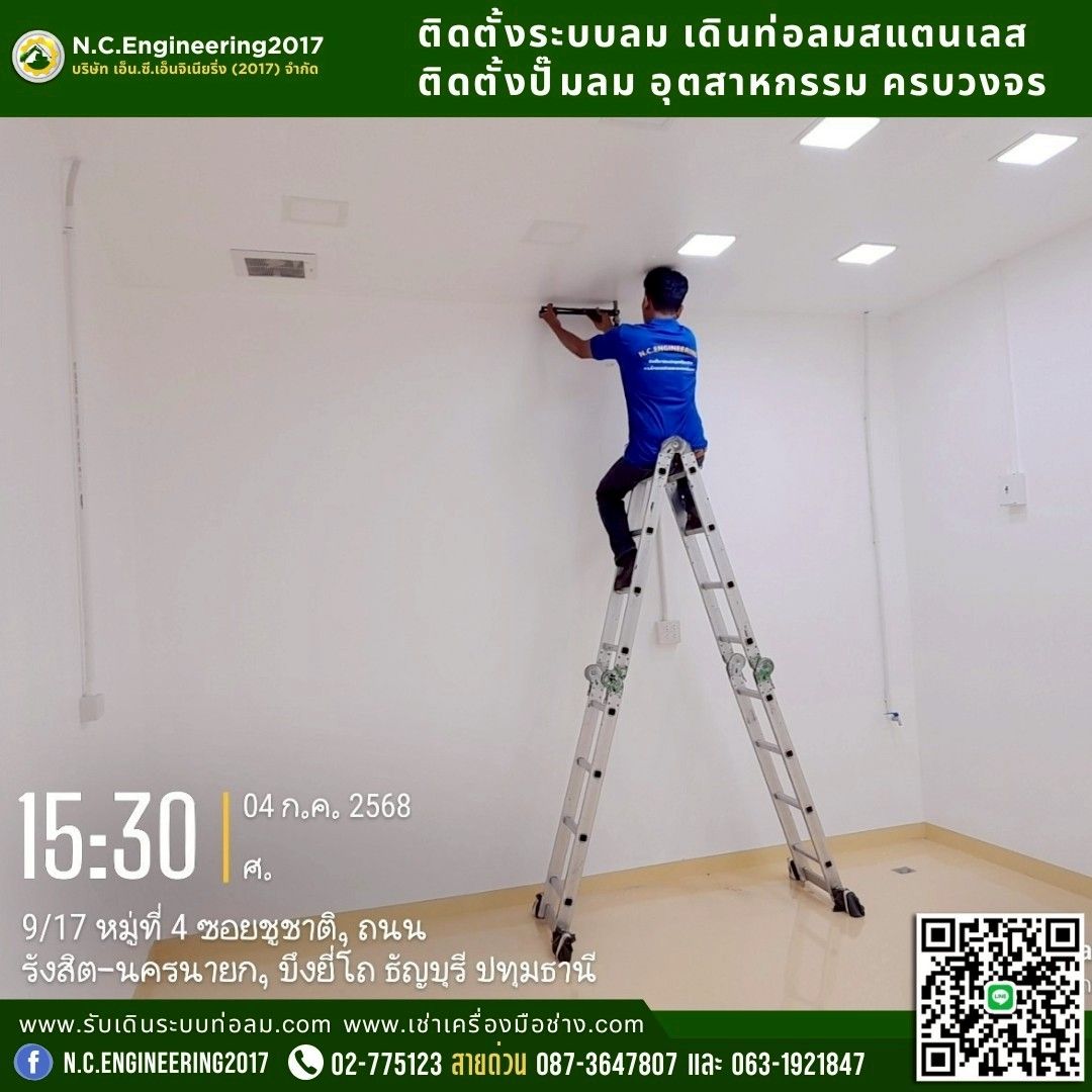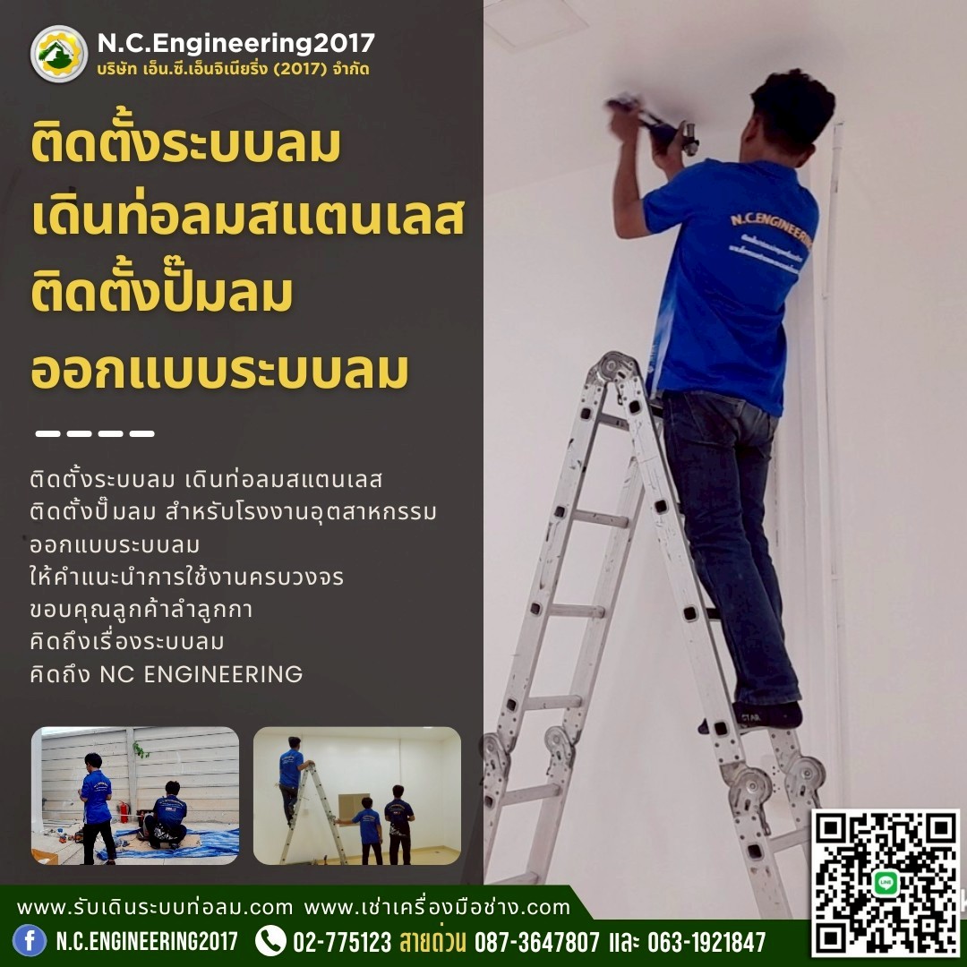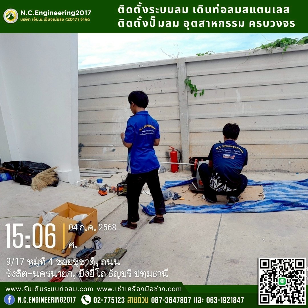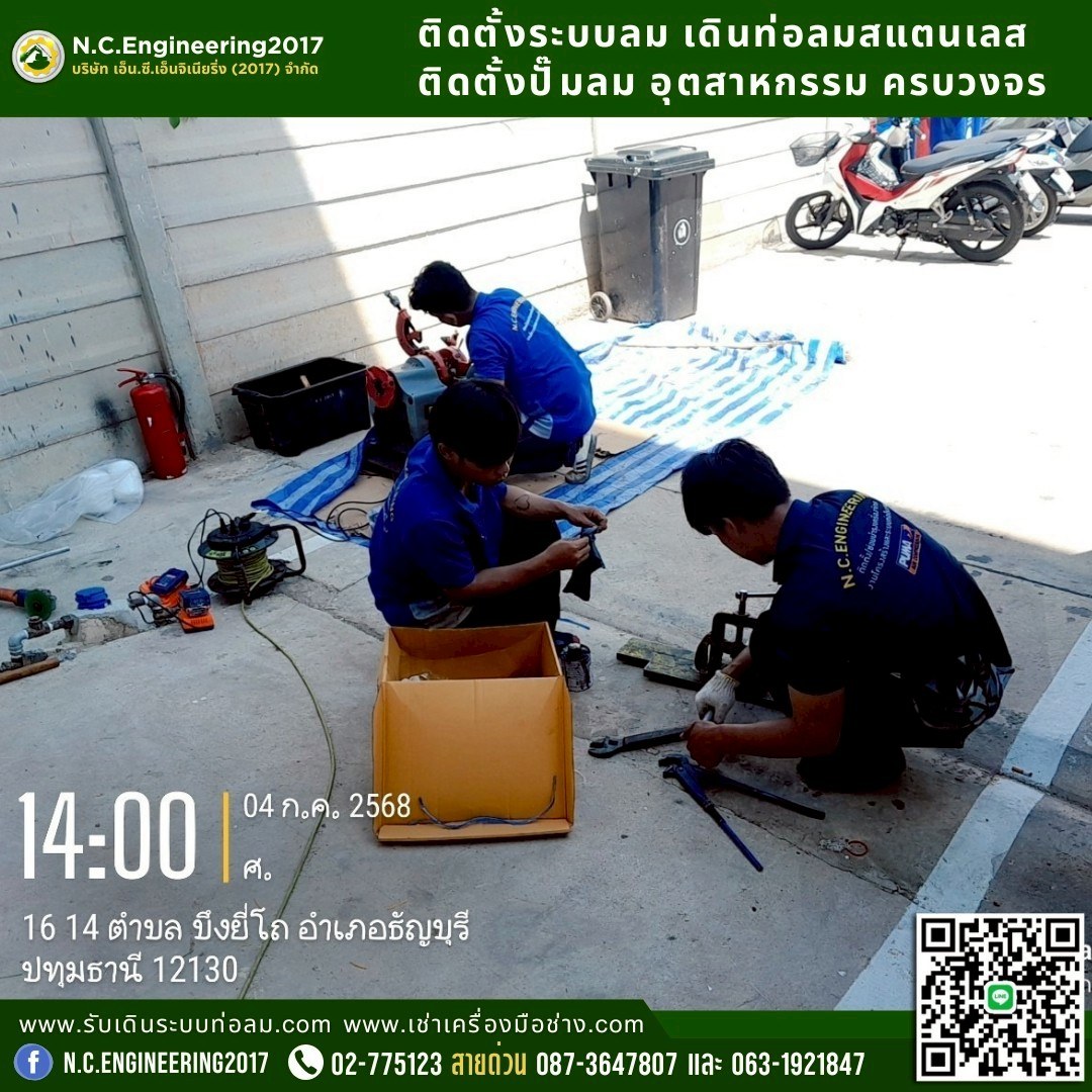 NC Engineering (2017) ให้บริการ ติดตั้งระบบลมอุตสาหกรรม ครบวงจร ตั้งแต่การออกแบบระบบลม เดินท่อลมสแตนเลส ติดตั้งปั๊มลม ไปจนถึงการทดสอบและแนะนำการใช้งานจริง เพื่อให้ระบบลมทำงานได้เต็มประสิทธิภาพ ปลอดภัย และลดปัญหาในระยะยาว