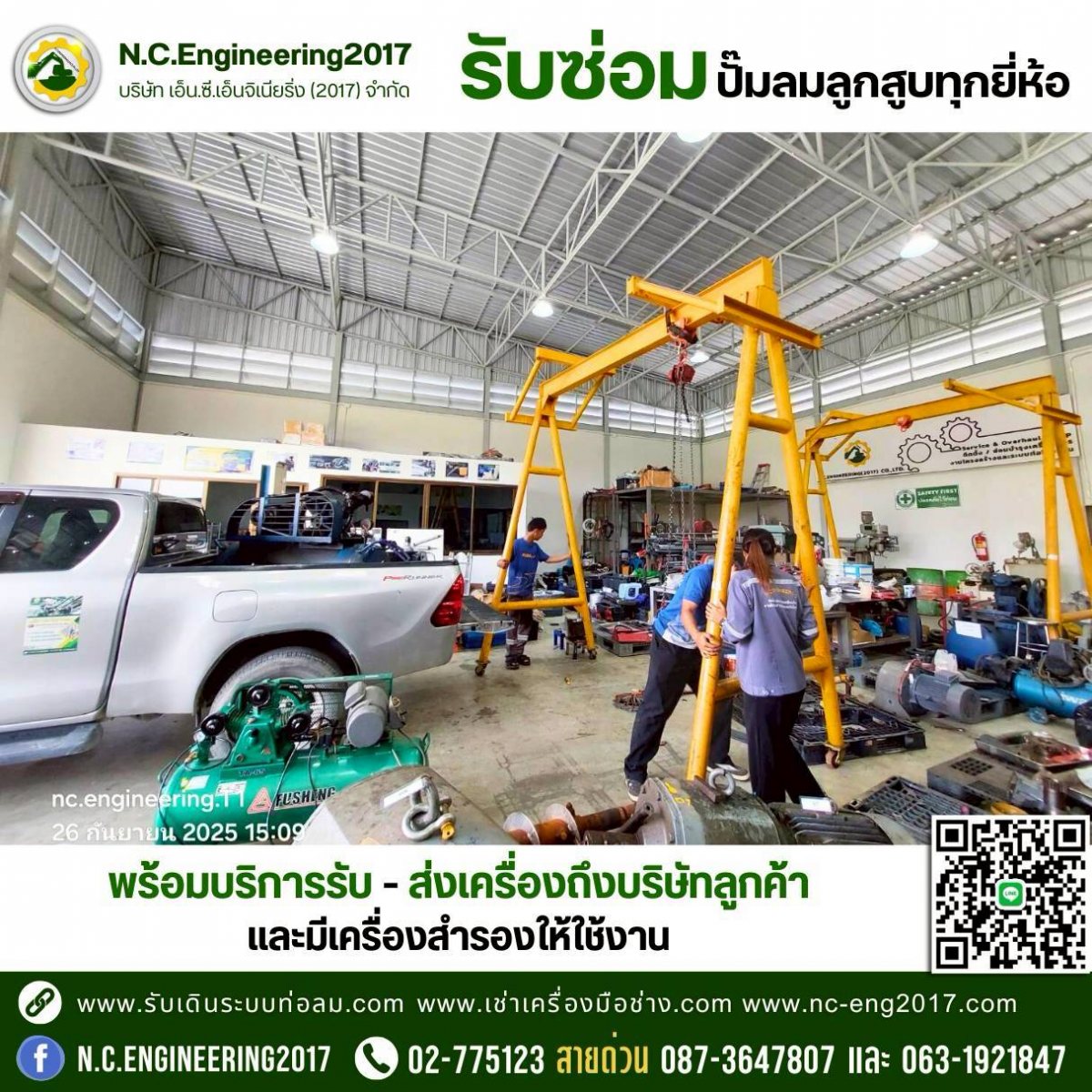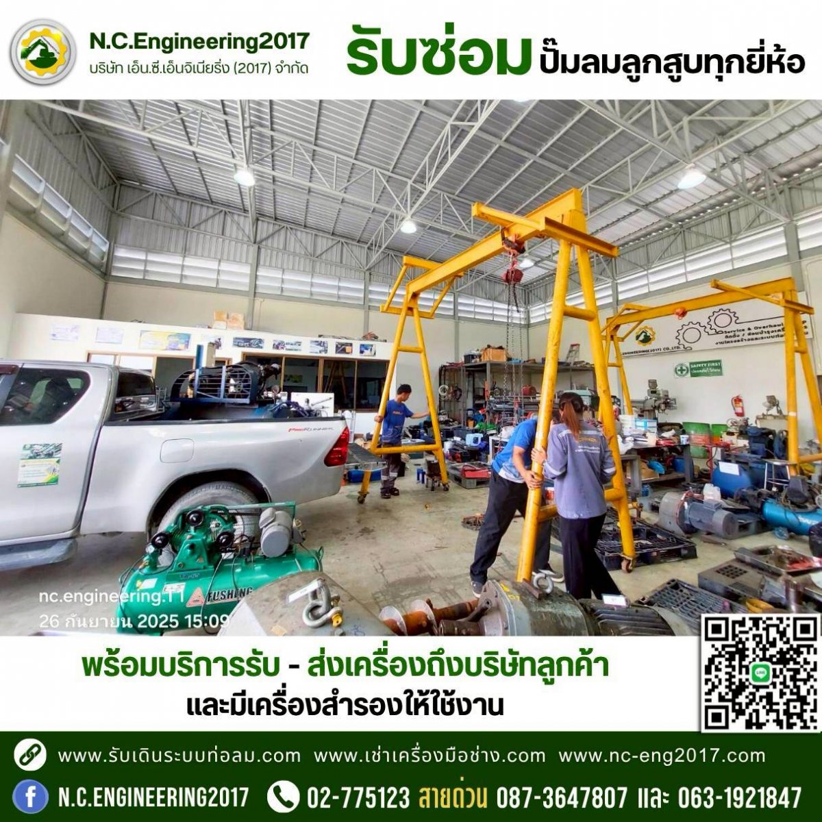 - มีบริการ รับ–ส่งปั๊มลมถึงสถานที่ลูกค้า