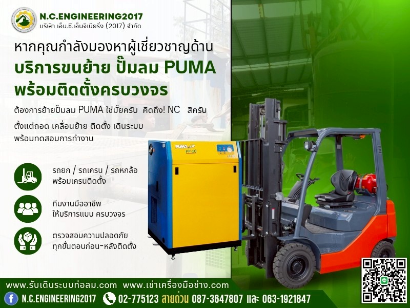 บริการขนย้ายปั๊มลม PUMA พร้อมติดตั้งครบวงจร โดย N.C.ENGINEERING2017