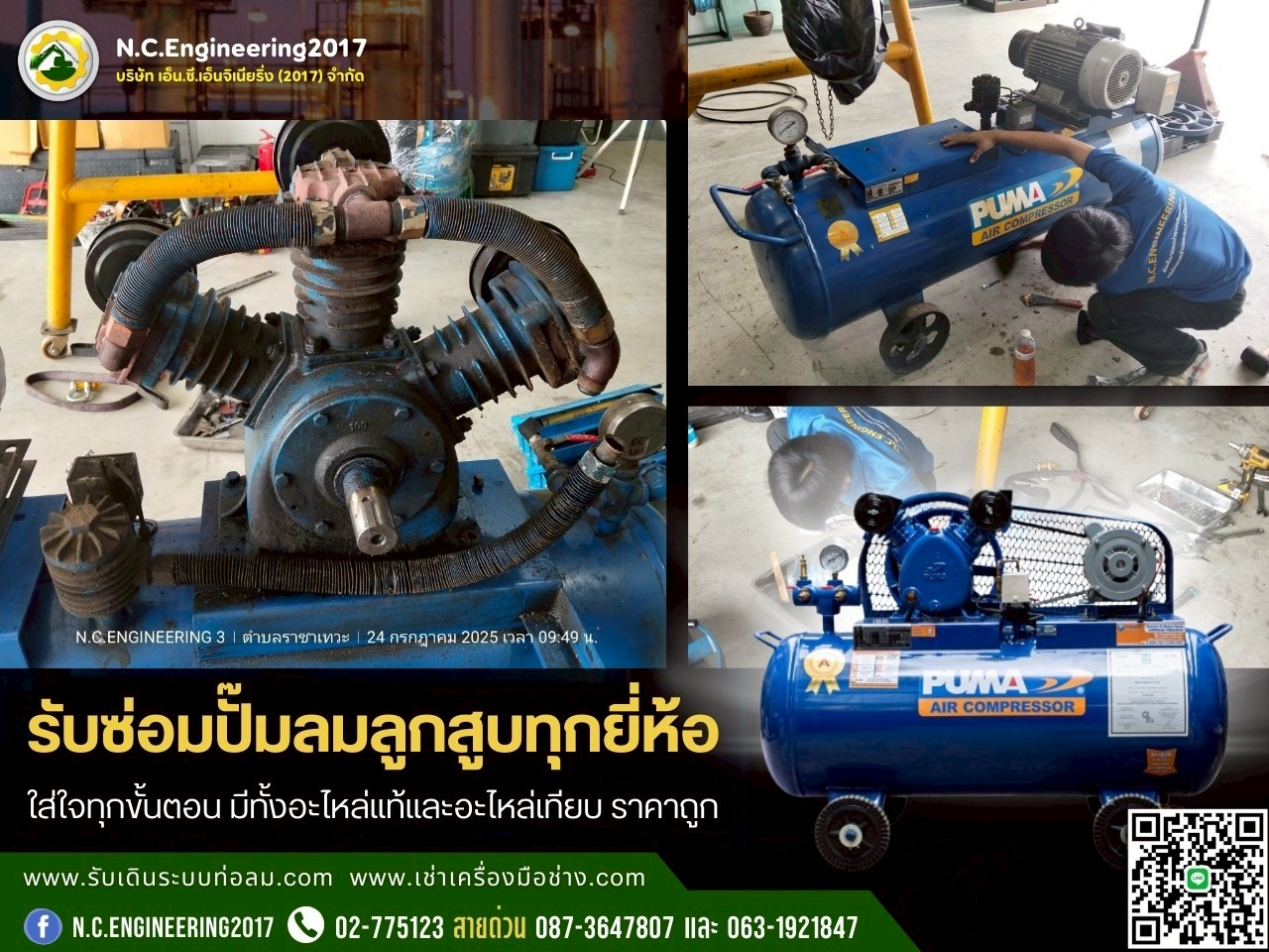 ให้บริการซ่อมปั๊มลมลูกสูบตั้งแต่การตรวจสอบสภาพเครื่อง แยกชิ้นส่วน วิเคราะห์อาการเสีย ไปจนถึงการประกอบและทดสอบแรงดัน เพื่อให้เครื่องกลับมาใช้งานได้เต็มประสิทธิภาพ