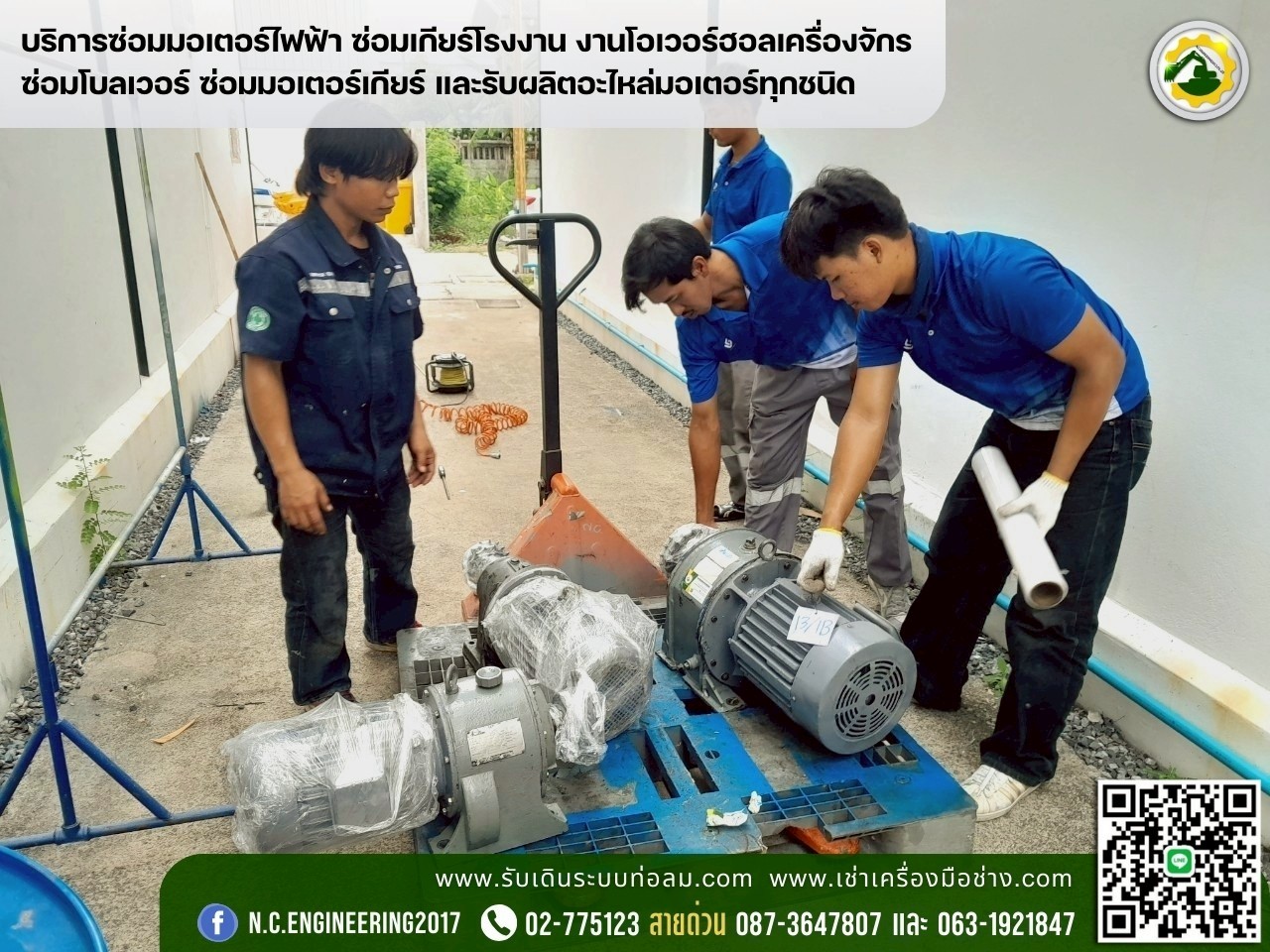 บริษัท เอ็น.ซี.เอ็นจิเนียริ่ง (2017) จำกัด ให้บริการซ่อมมอเตอร์ไฟฟ้าทุกชนิด ซ่อมเกียร์โรงงาน งานโอเวอร์ฮอลเครื่องจักร ซ่อมโบลเวอร์ ซ่อมมอเตอร์เกียร์ พร้อมรับผลิตอะไหล่มอเตอร์ตามแบบและความต้องการของลูกค้า