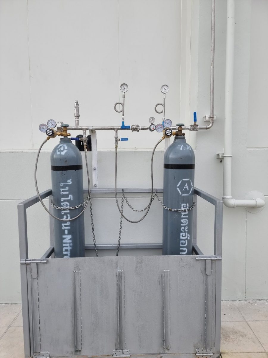 งานเดินท่อไนโตรเจนเครื่อง AUTO PACKING MACHINE ท่อสแตนเลส ติดตั้งถังไนโตรเจน